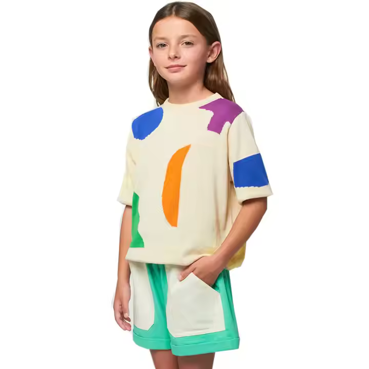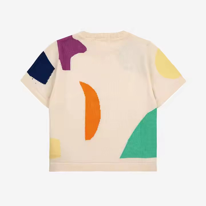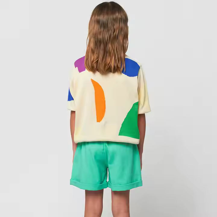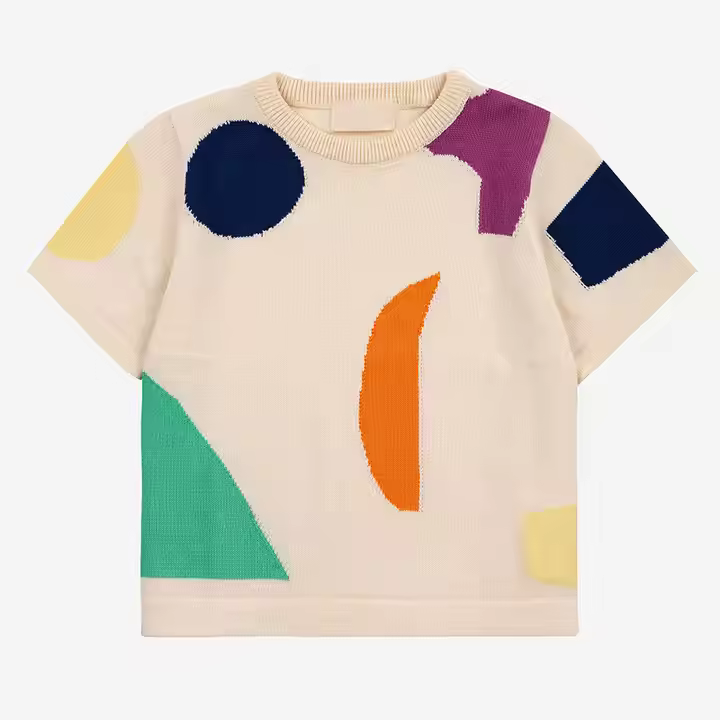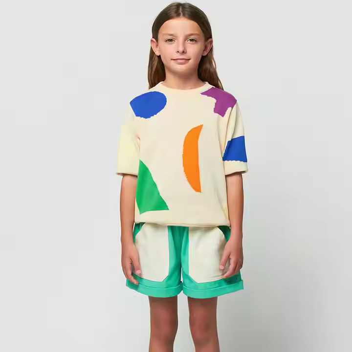 Ins Hot Colors Block Girl Knitted Top Soft Light Weight Short Sleeve Sweater Kid Knit Clothing T-shirt