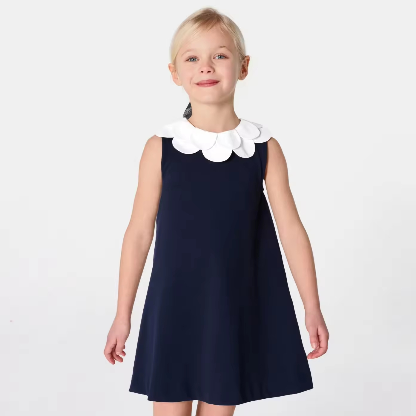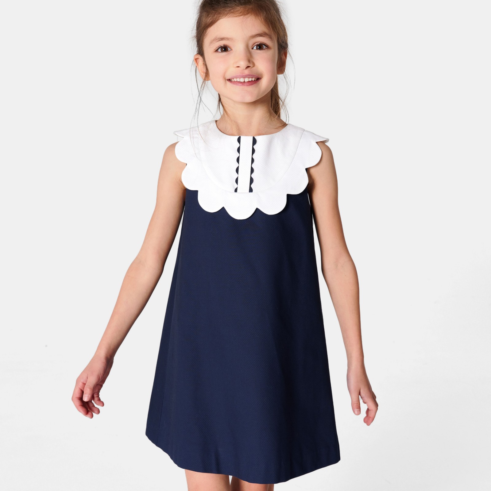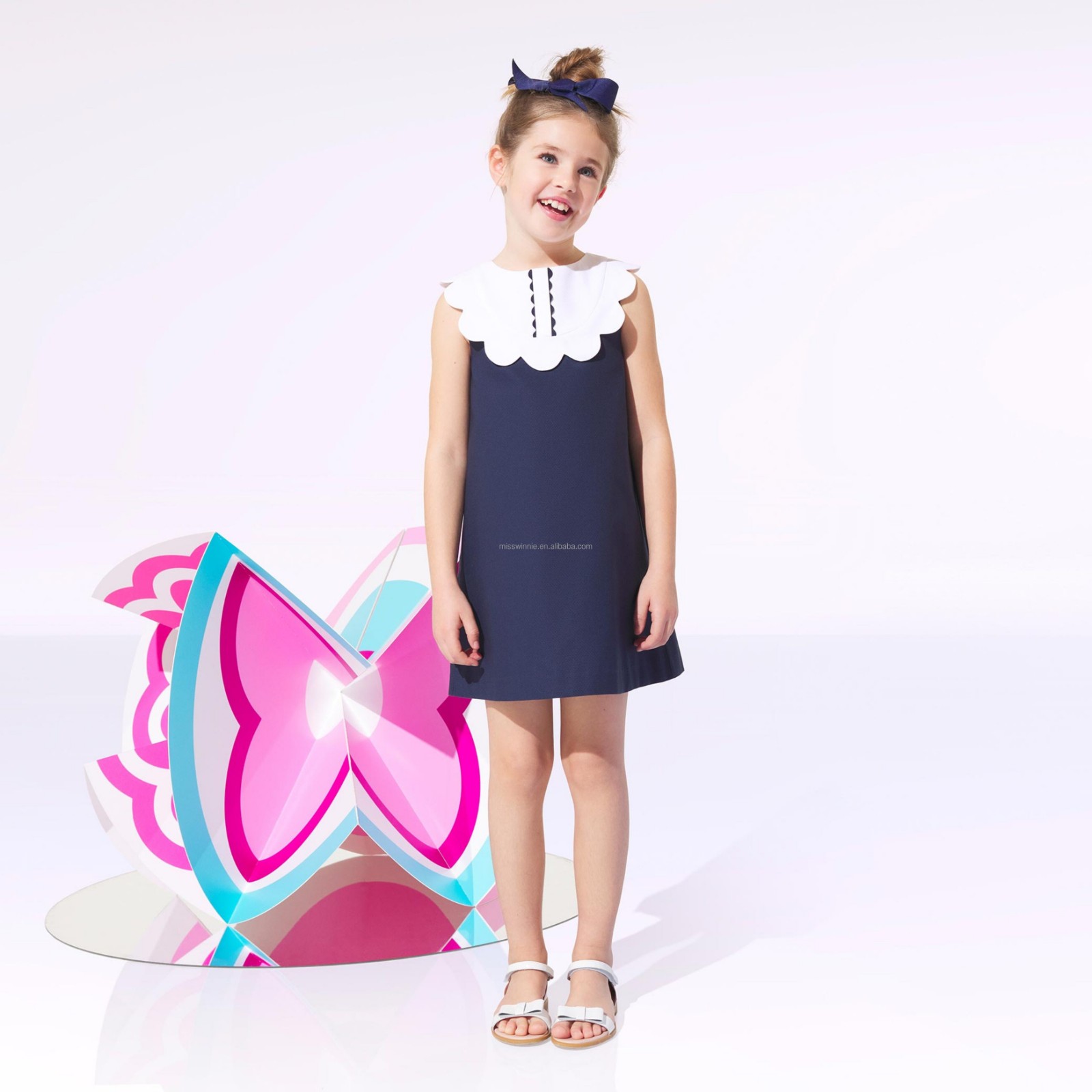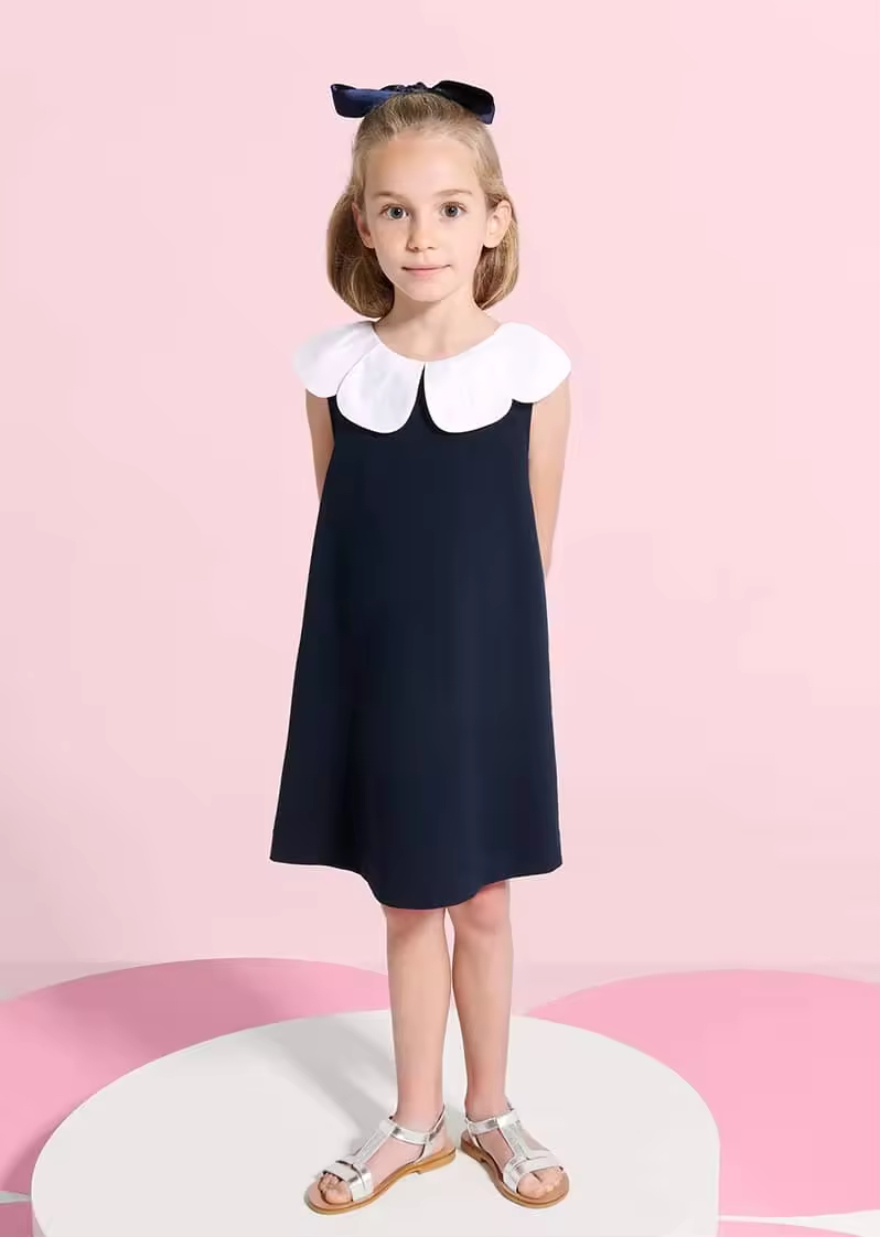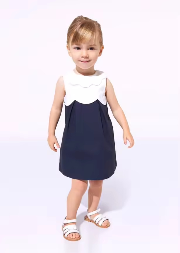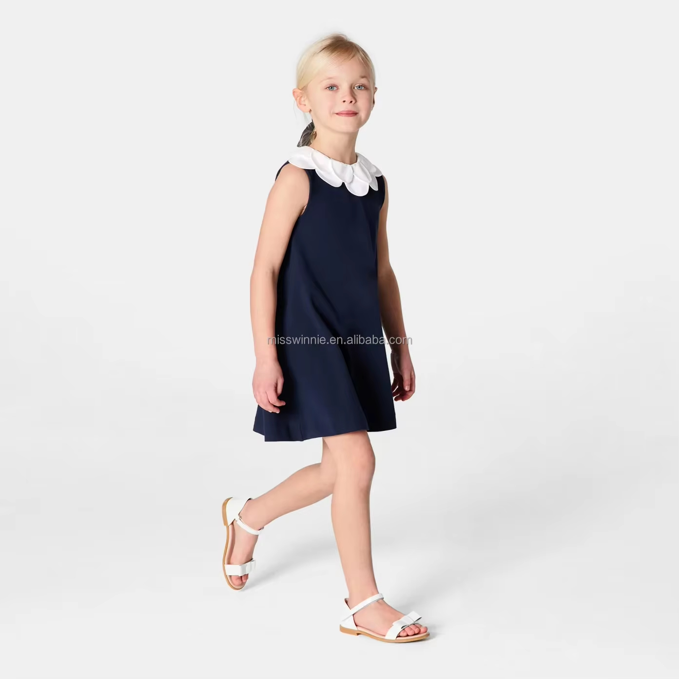 1.Girls Dress in White/black color, quality cotton fabric and a vintage style.