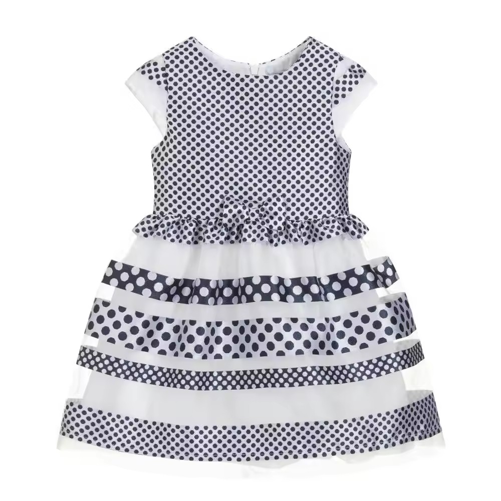 Wholesale Children's O-Neck Dress Girls Breathable Woven Fabric Tiered Decoration Dot Mini-Length 2-10 Years Old Washable
