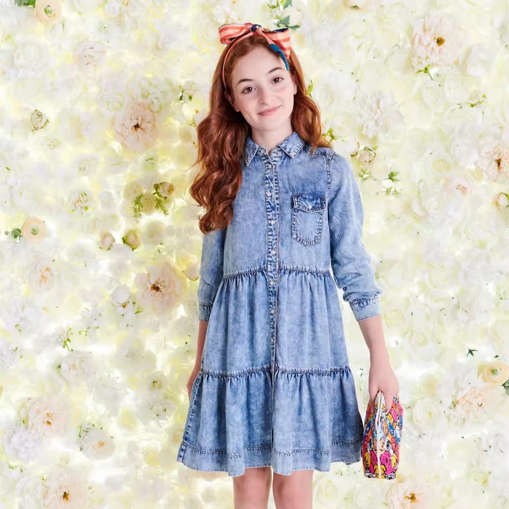 /Customized Different Style Acid Wash Summer or Autumn Denim Kids Dresses for Girls Brand Knee Length Kids Denim Dress Supplier