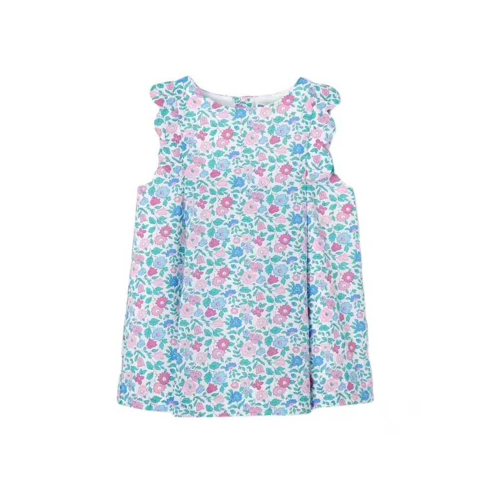 OEM & ODM Custom Floral Print Sleeveless Dress for Kids Toddler Baby Girls Woven Fabric with Button Decoration for Children