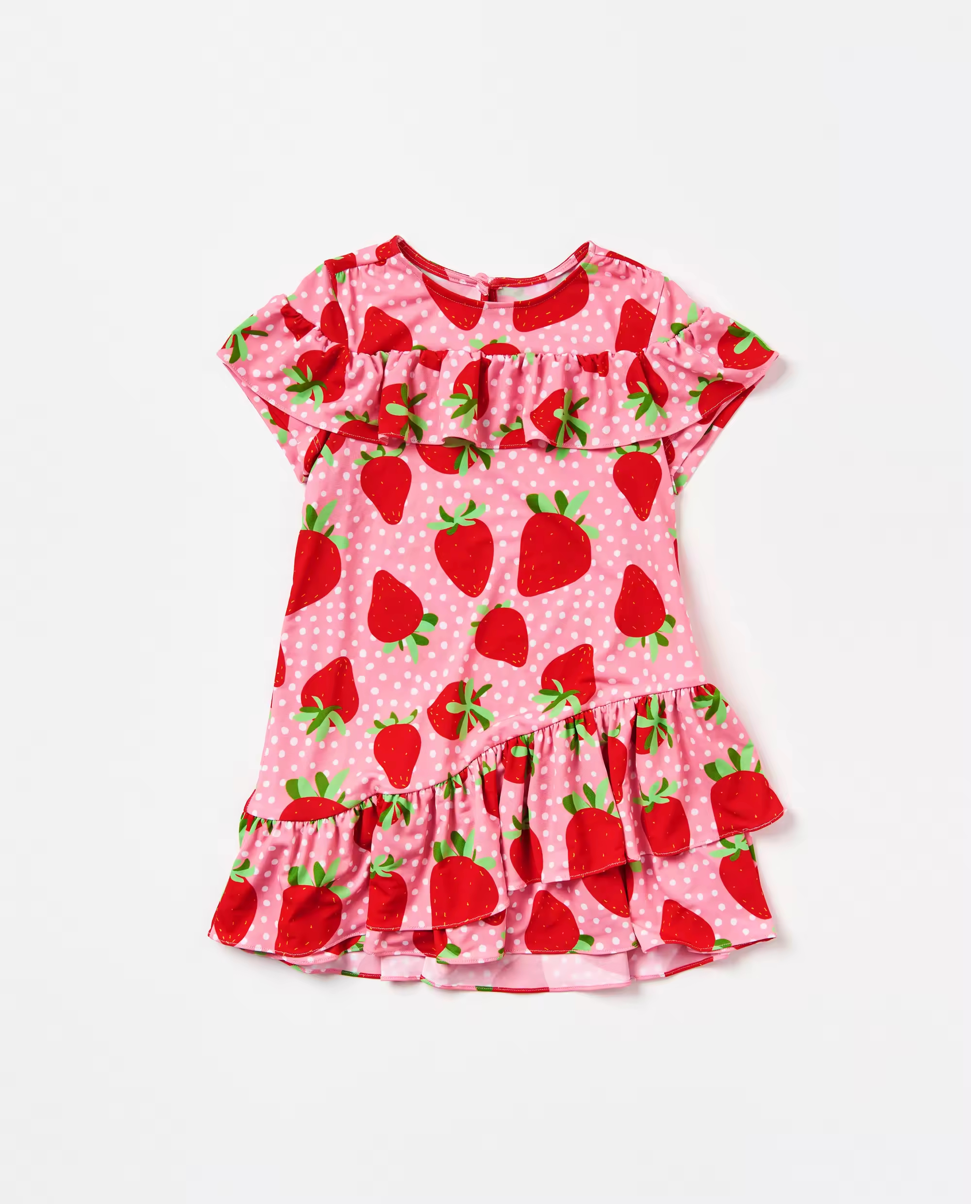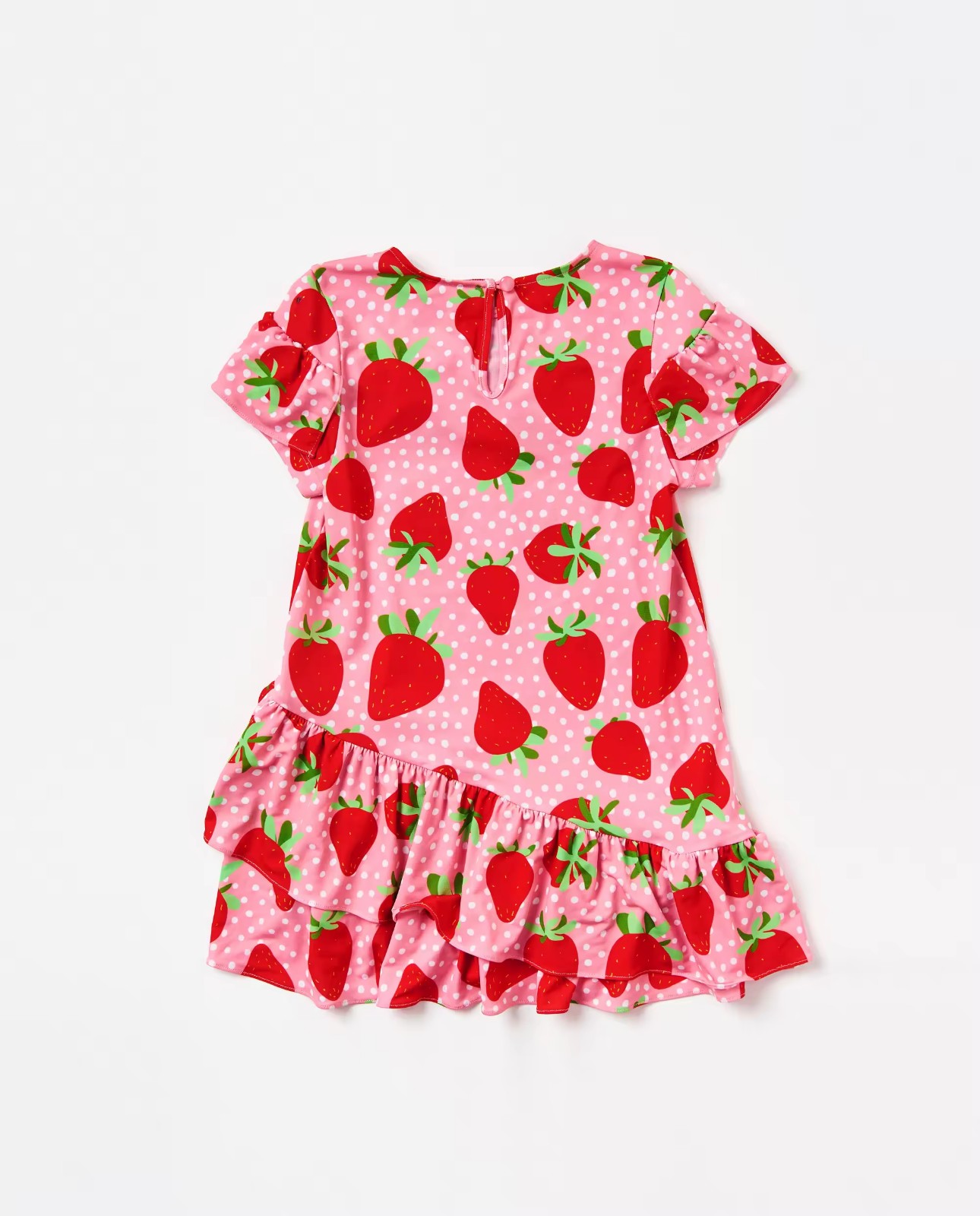 Customized European Style Girls' Dress with Strawberry Print Round Collar Chiffon Fabric ODM Supply for Children