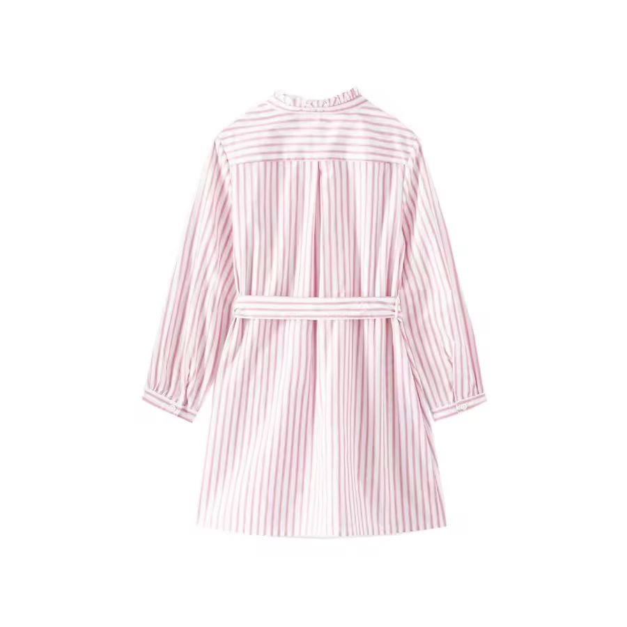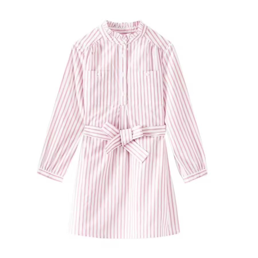 /Customization Summer Style Cotton Shirt Dress for Kids Girls with O-Neck and Striped Pattern Long Sleeves and Belt