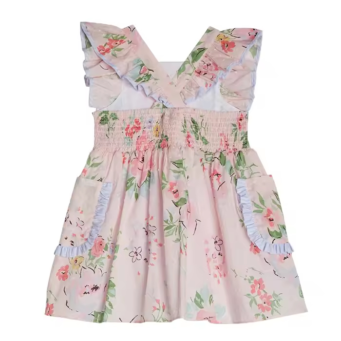 2025 New Design Baby Dress Lovely Summer Infant Baby Girl Ruffle Pink Floral Dress