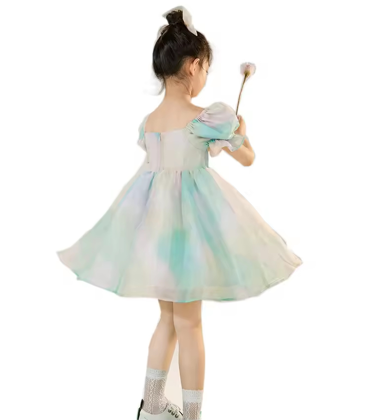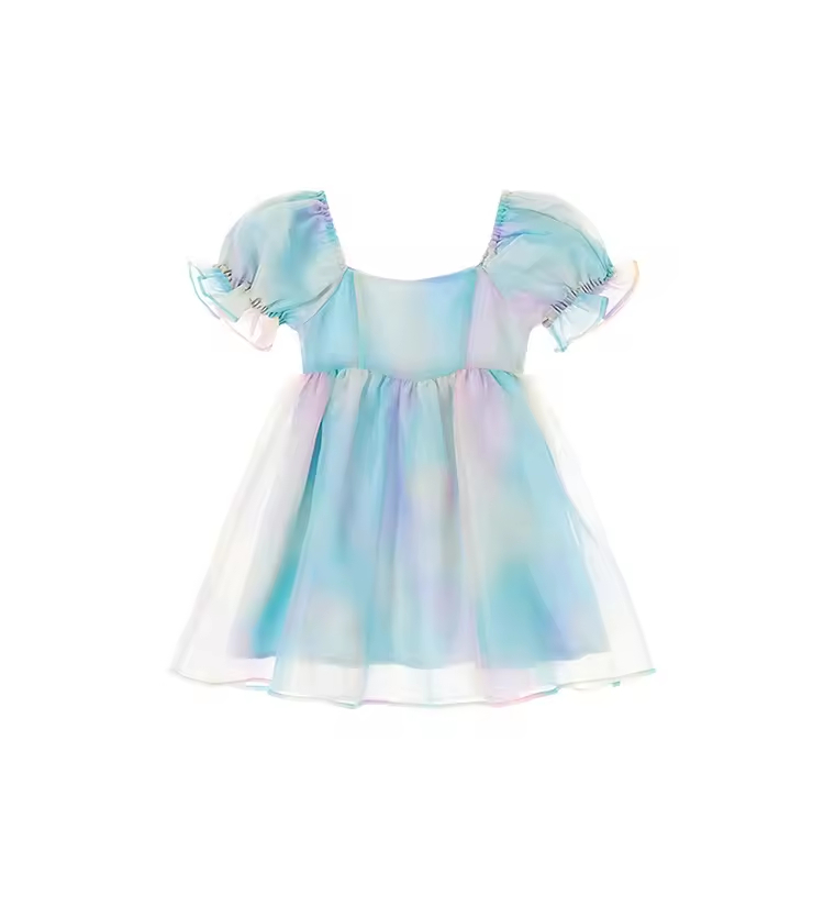 Fashion Children Dress Tie Dye Cotton Short Puff Sleeves Girls Dresses Guangzhou Factory