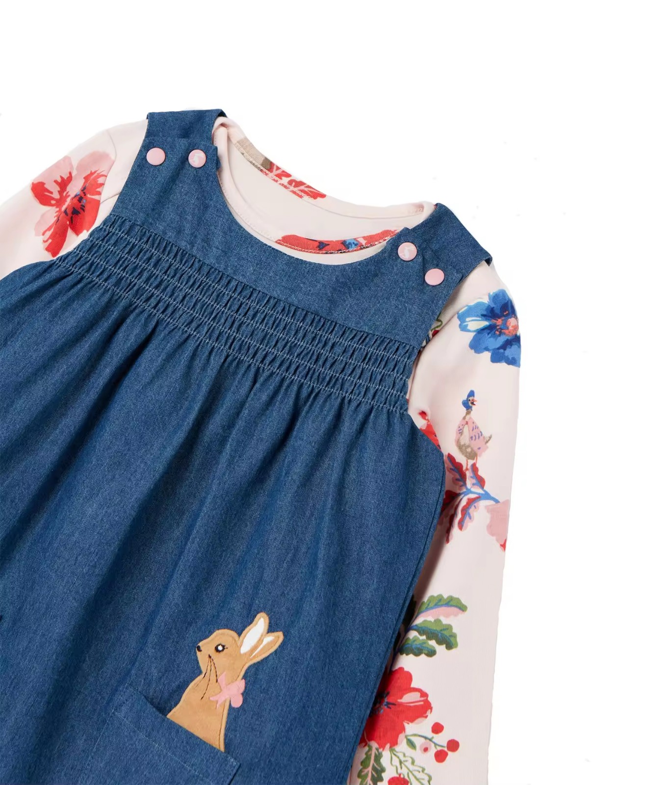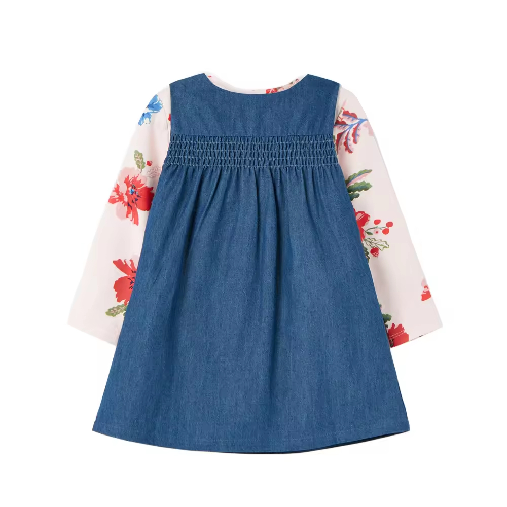 Denim Tank Dress Fake 2 pcs Long sleeves Dress Smocking With Embroidery For Kids Girls 6-10 y Manufacturing