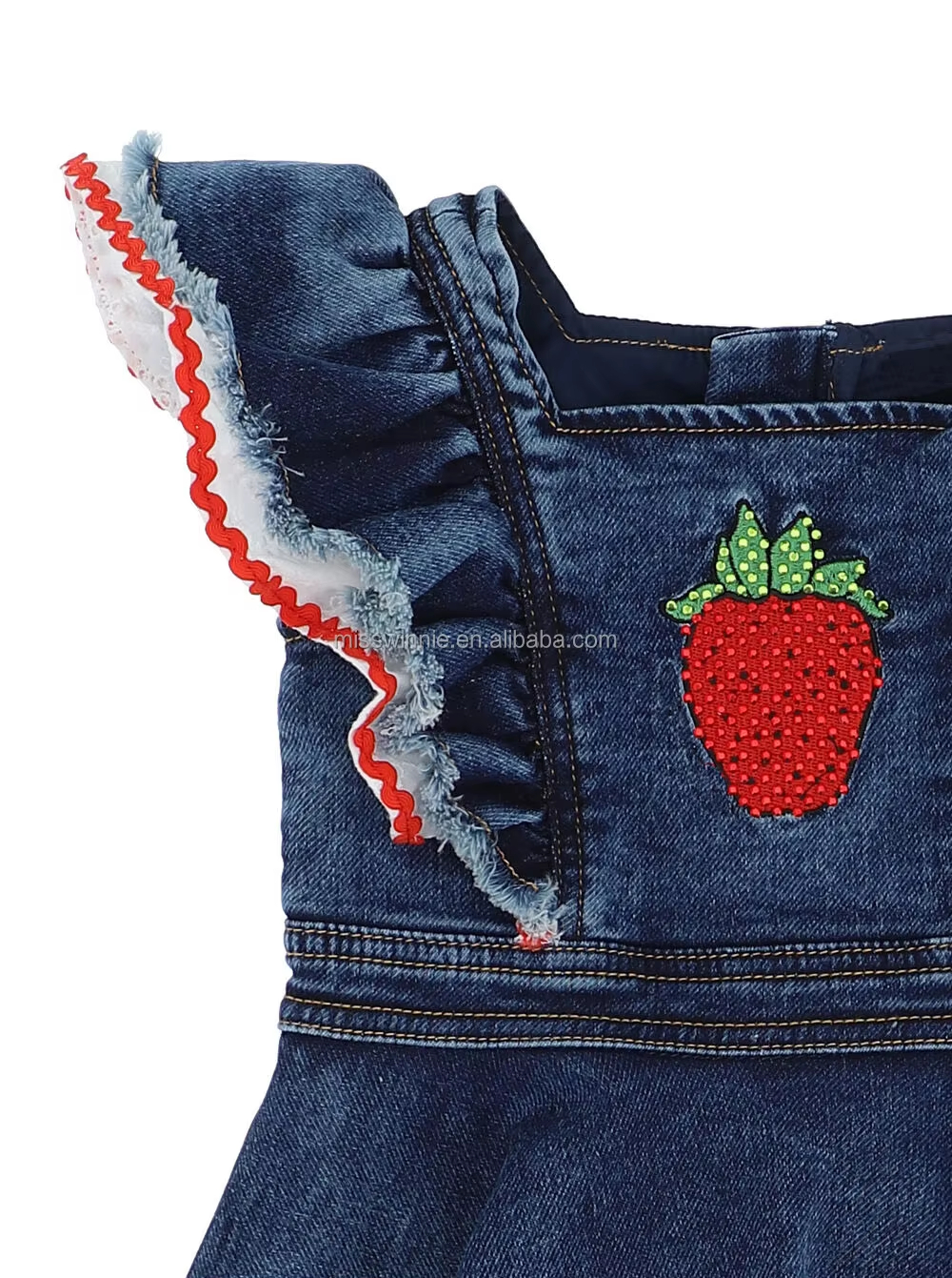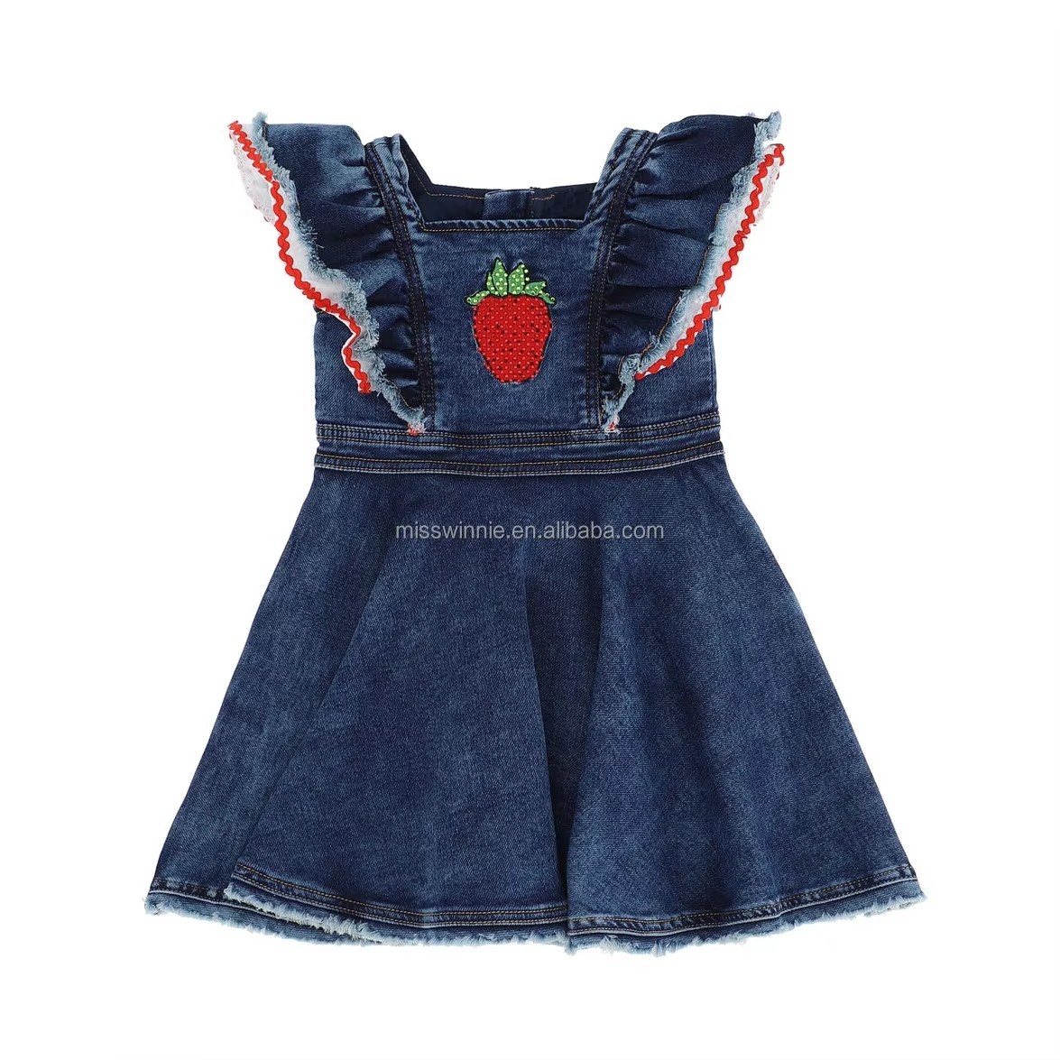 /Boutique European Style Solid Pattern Denim Dress for Baby Girls Summer Washing Clothing with Embroidery Patch