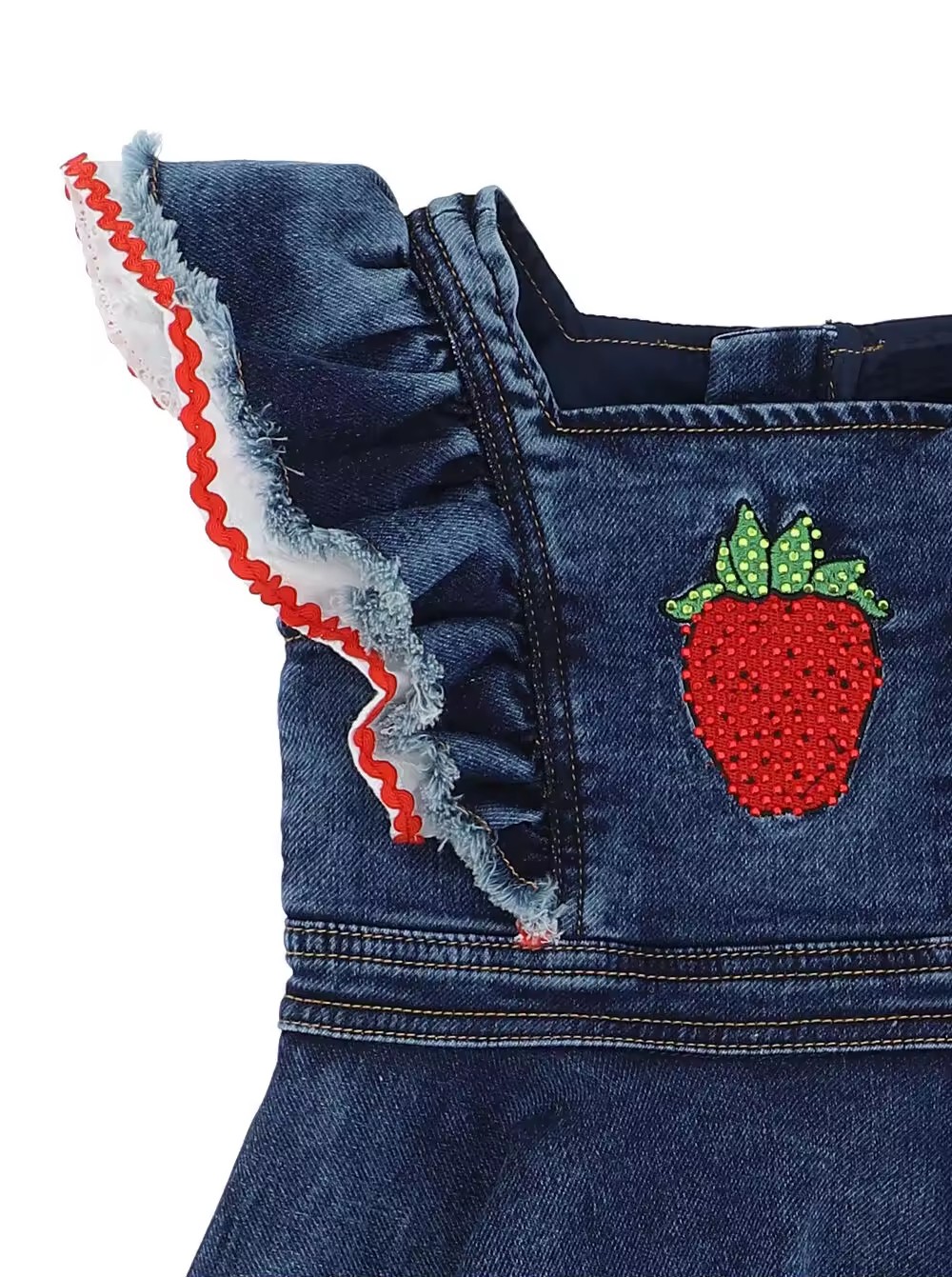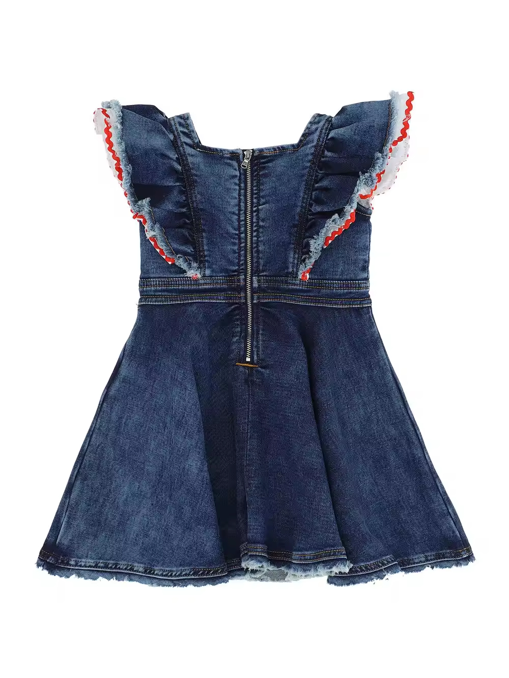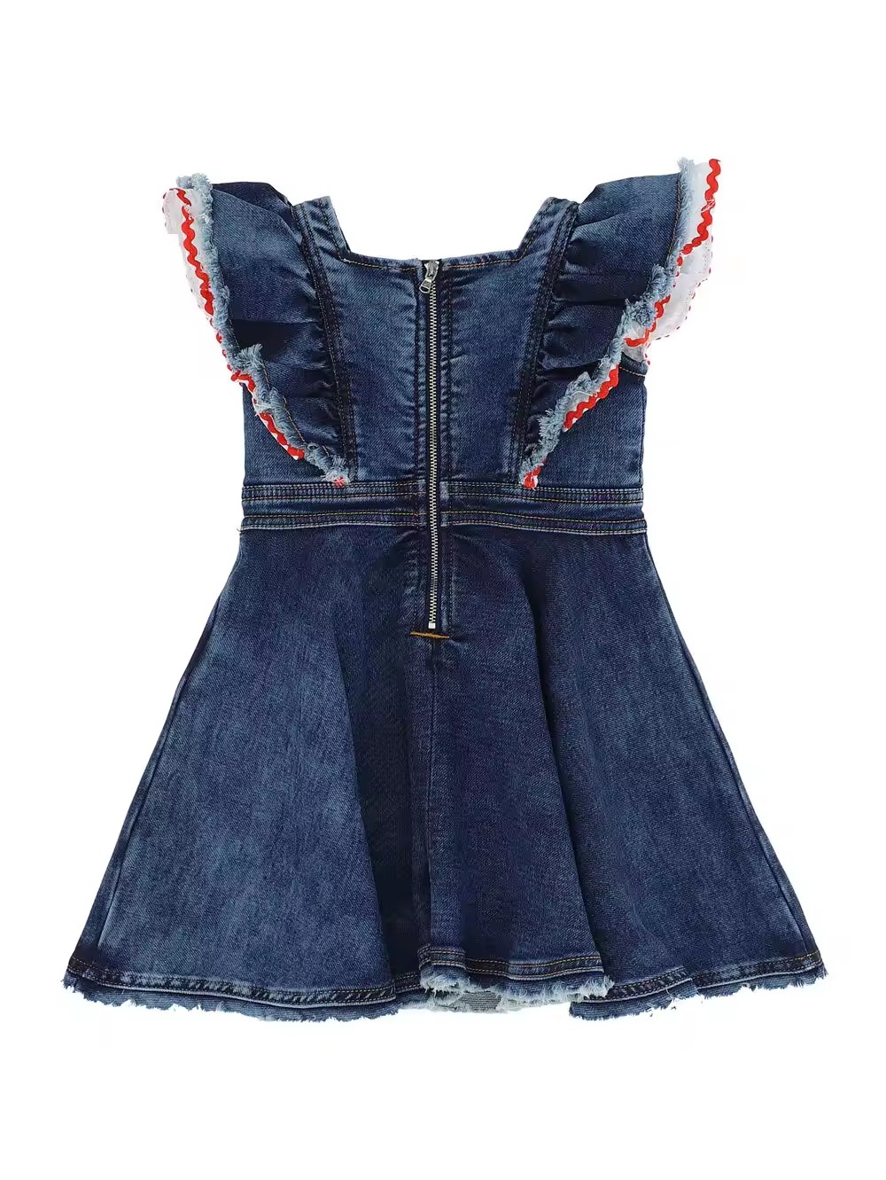 Custom Brand Summer Pink Girls Denim Dress With Vintage Wash Look Scallop Details for Kids