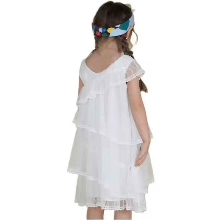 1.Girls Dress in White/black color, quality cotton fabric and a vintage style.