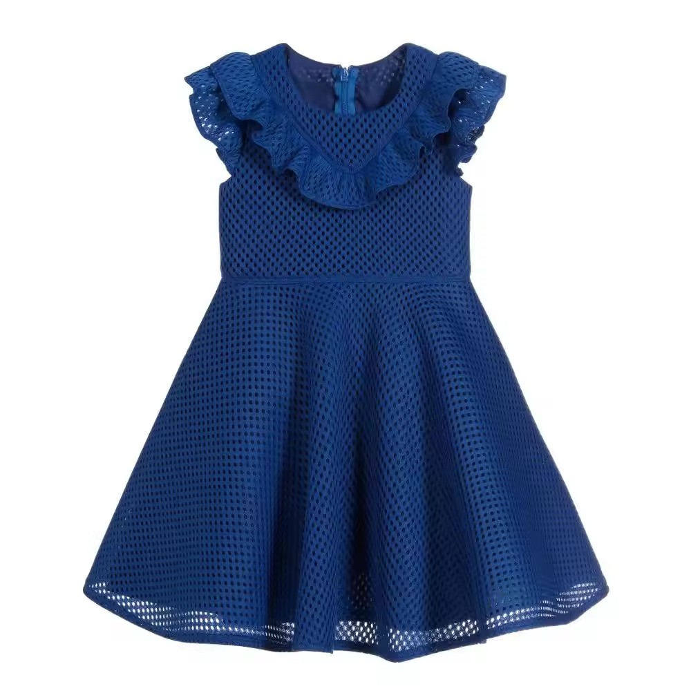 ODM Fashion Sleeveless Small Girls Dress Latest Designs with Solid Pattern and Ruffle Decoration Woven Fabric for Summer