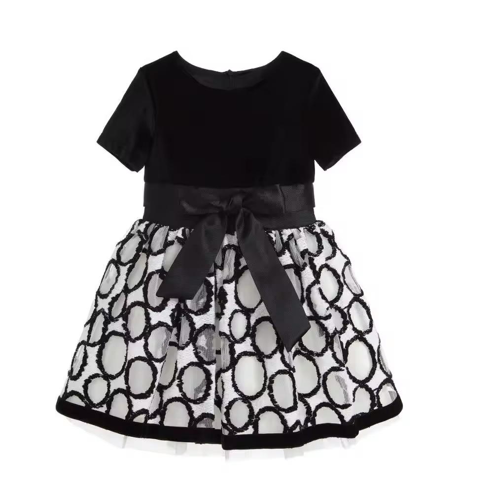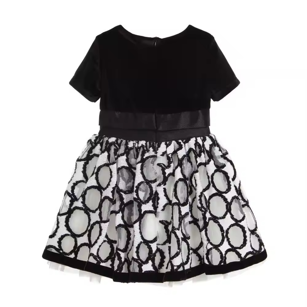 1.Girls Dress in White/black color, quality cotton fabric and a vintage style.