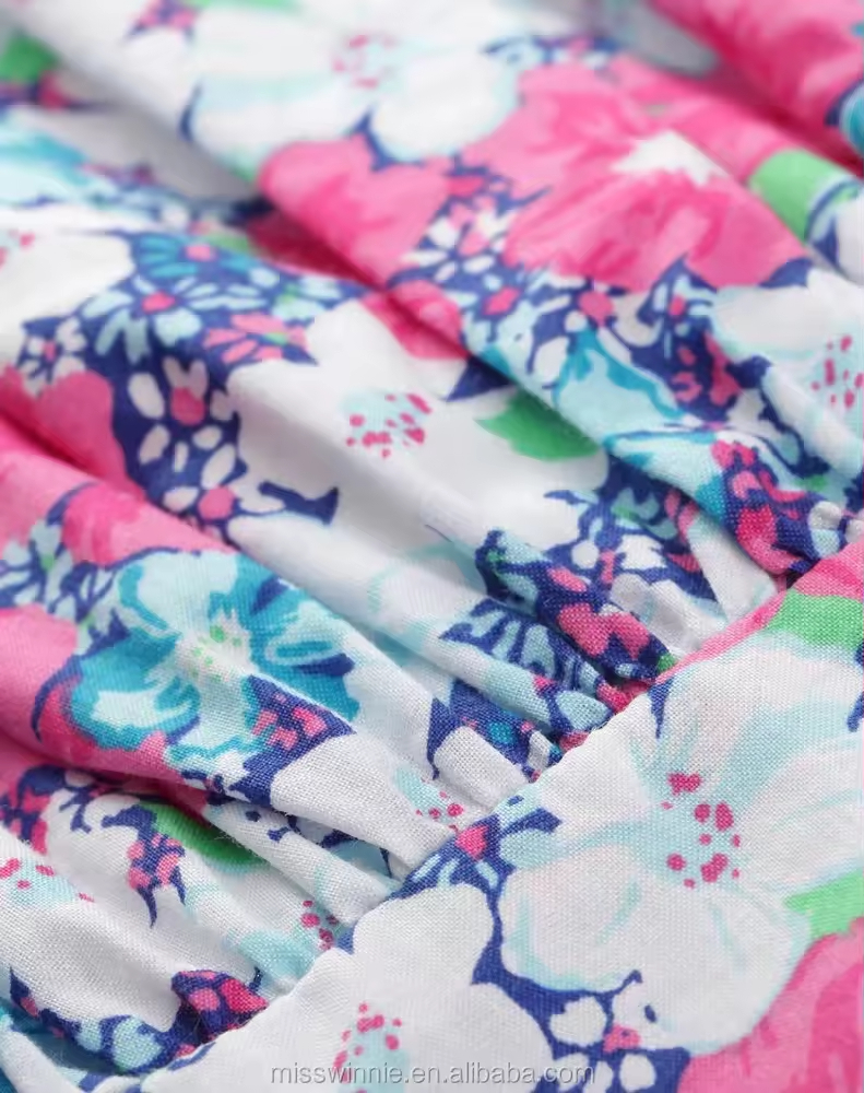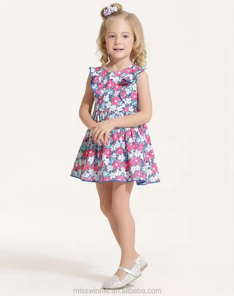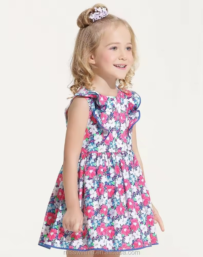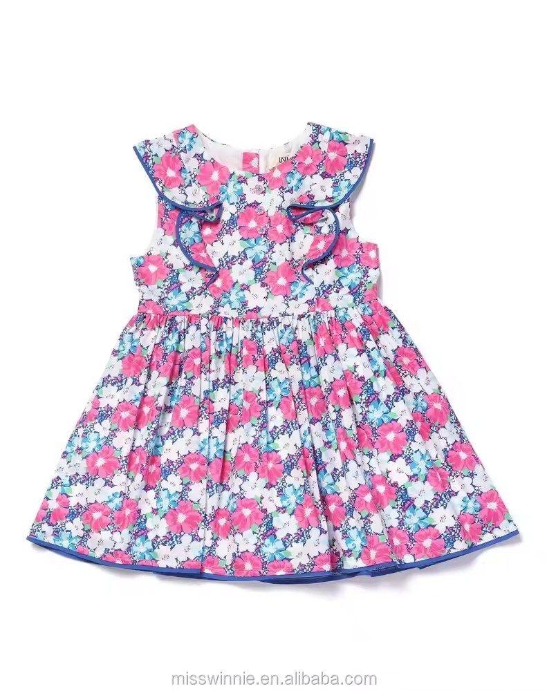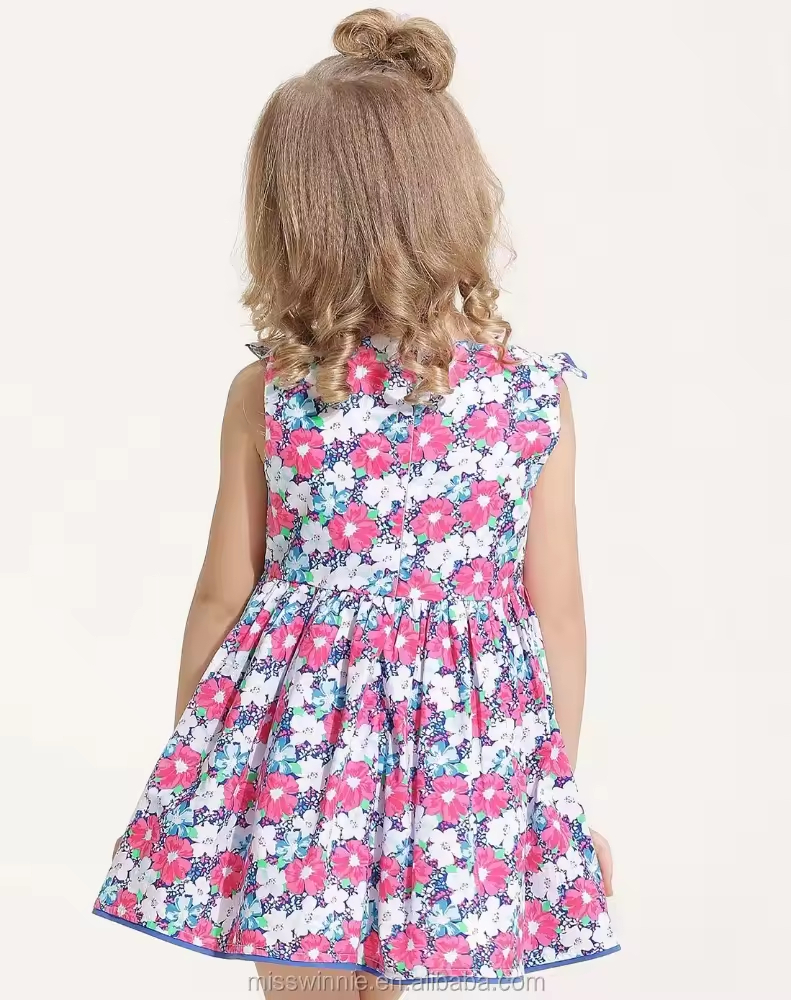 OEM Custom Kids Girls Dress Romper Fashion Baby Clothes Flora Pattern Woven Fabric Ruffle Summer Sleeveless Custom Clothing