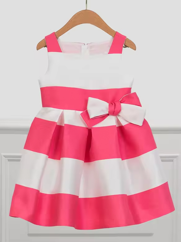 OEM ODM Elegant Summer Princess Dress for Girls Unique Textured Pink Party Dress Knee-Length with Button Decoration