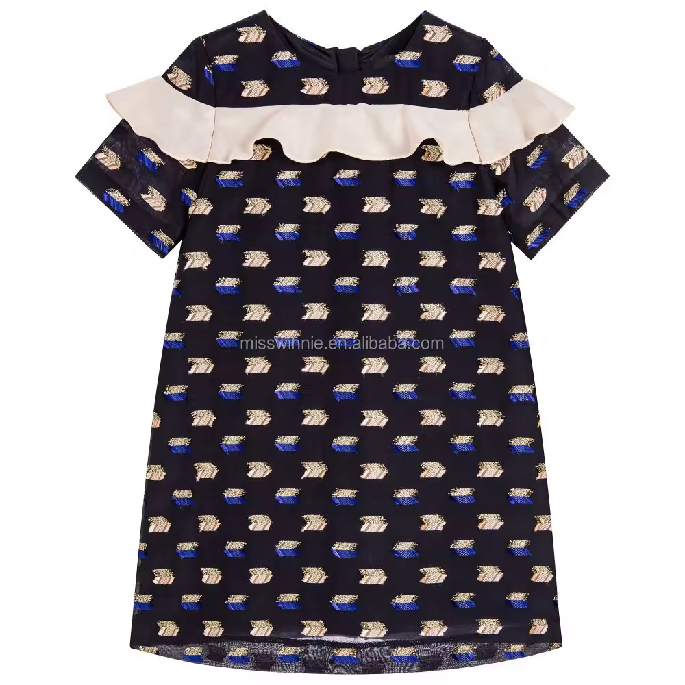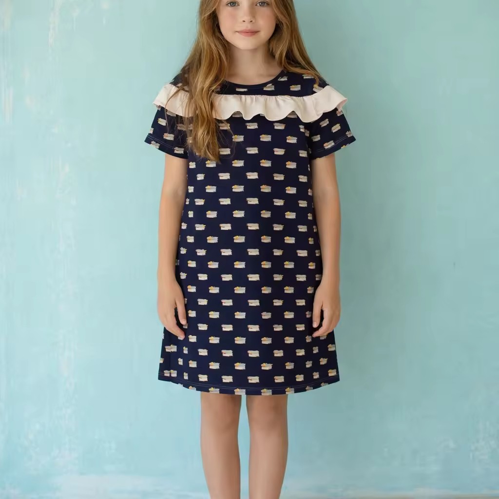 New Design Mini-Length Girls Dress Summer Fashion Short Sleeve 100% Cotton Printed Fabric ODM Supply for Any Occasion