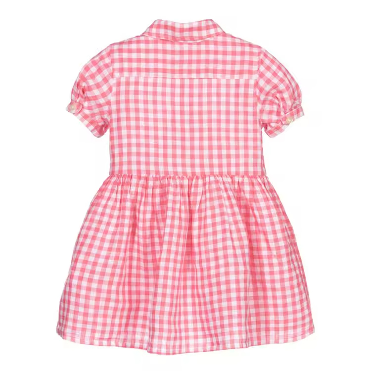 OEM & ODM Service Breathable Daily Wear Puff Sleeve Summer Fashion Children Casual Dress pink Grid Cotton Baby Girls Dresses