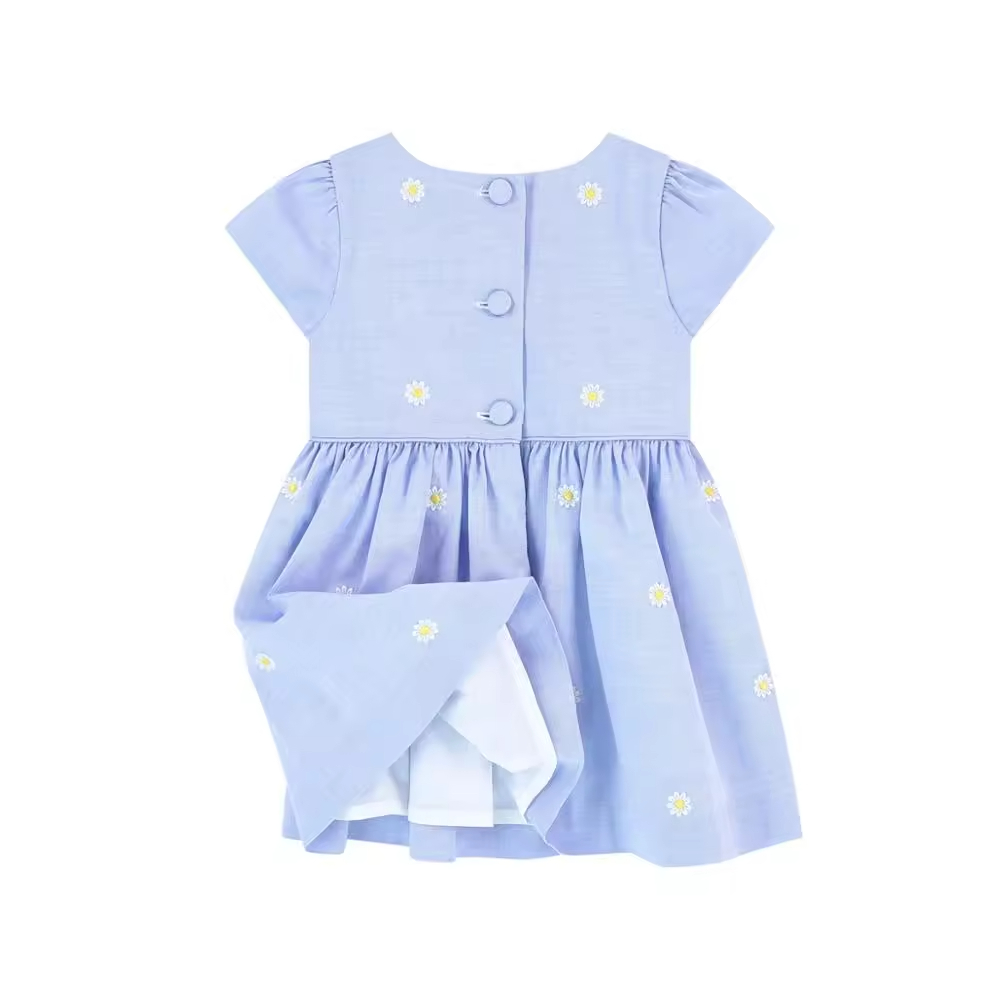 /Hot Selling Blue Cotton Floral Dress for Little Girls Knee-Length ODM Supply for Kids Fashion