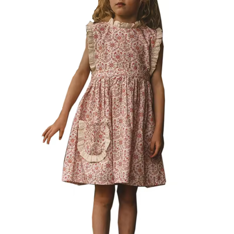 Guangzhou Children's Dress Supplier Summer Print Dress with Bow Decoration 30 Years Custom Wholesale Children's Clothing Factory